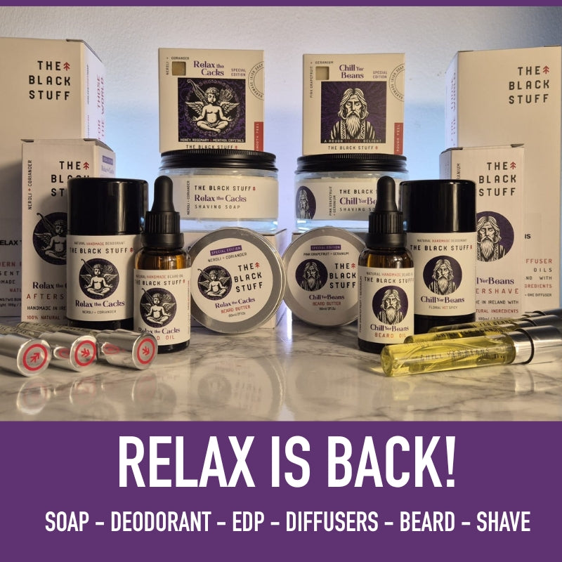 Season 5 of Relax the Cacks is back. Accompanied by Chill Yer Beans. Now available accross al products in soap, deo, edp, diffusers, beard and shaving while stocks last.